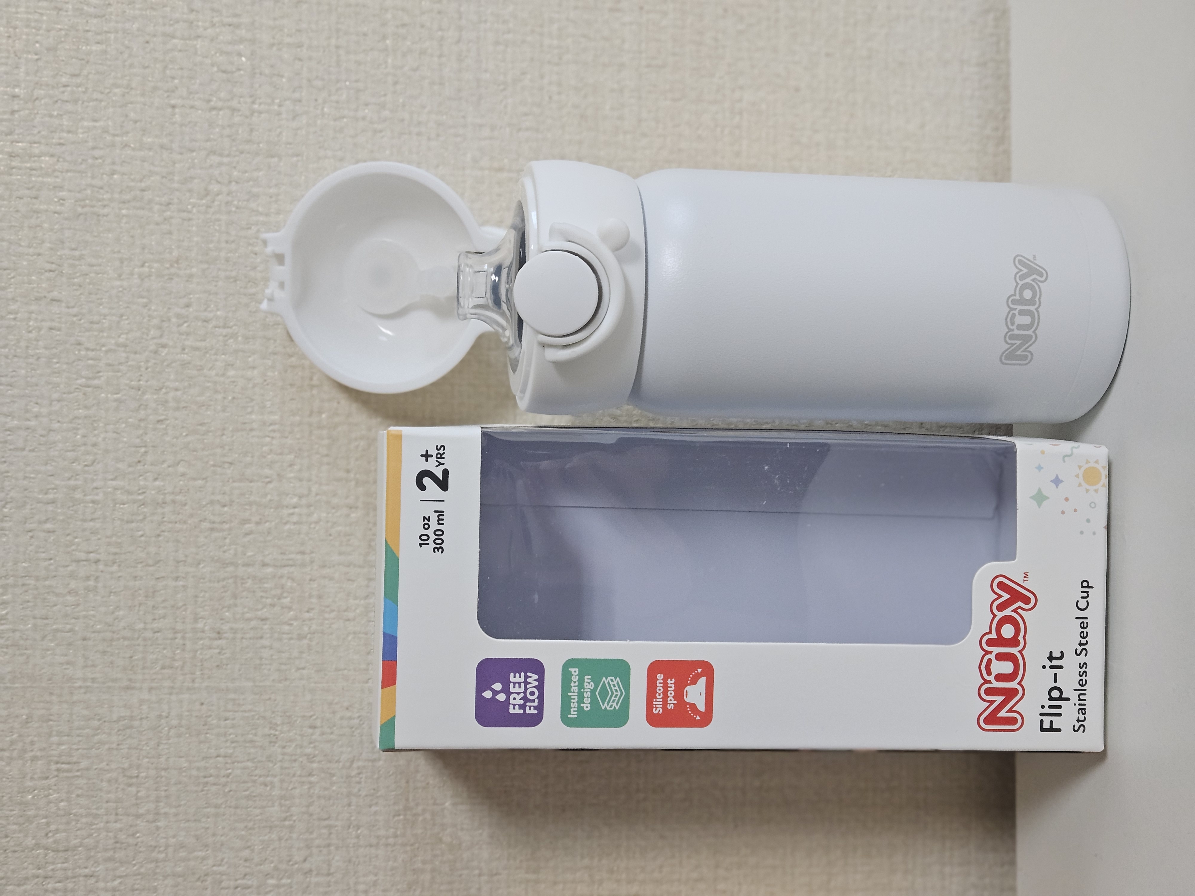 The Nuby One-Touch Stainless Bottle is a vacuum-insulated, child-friendly water bottle with a simple silicone spout and minimal detachable parts, making it easy to clean and maintain.