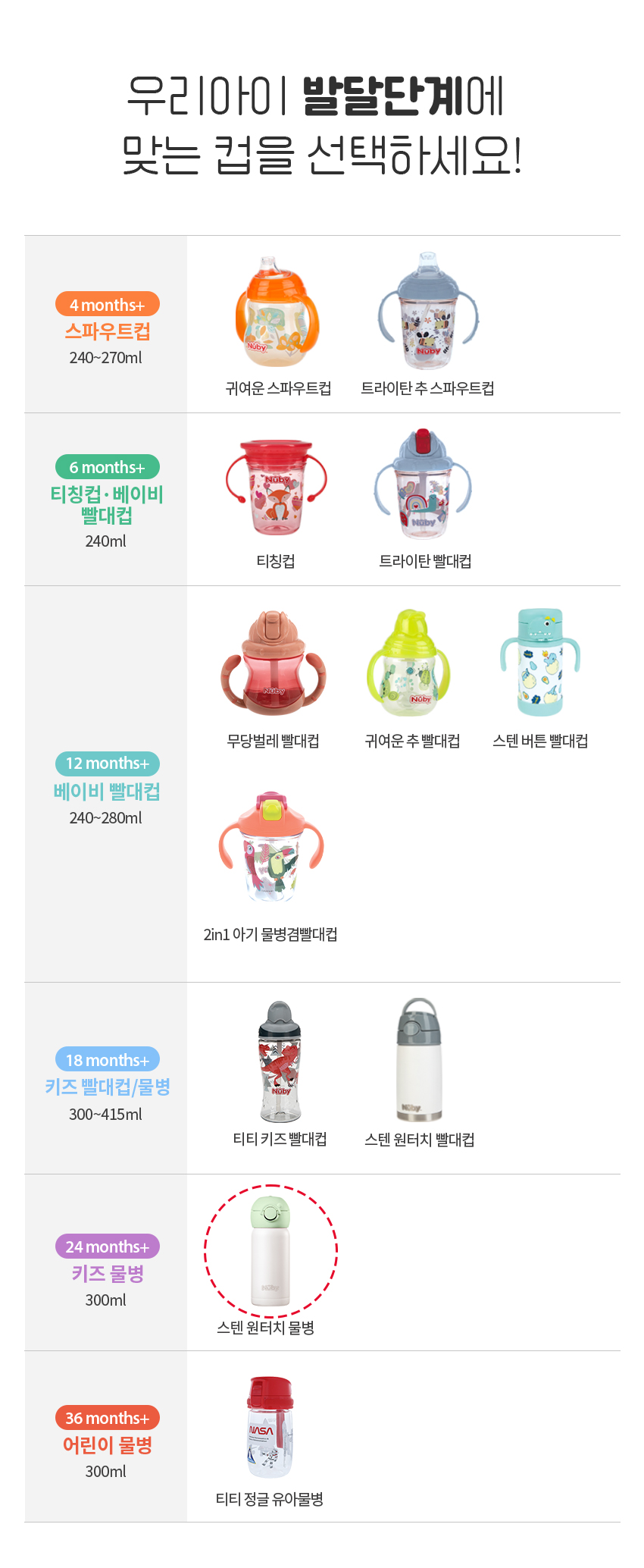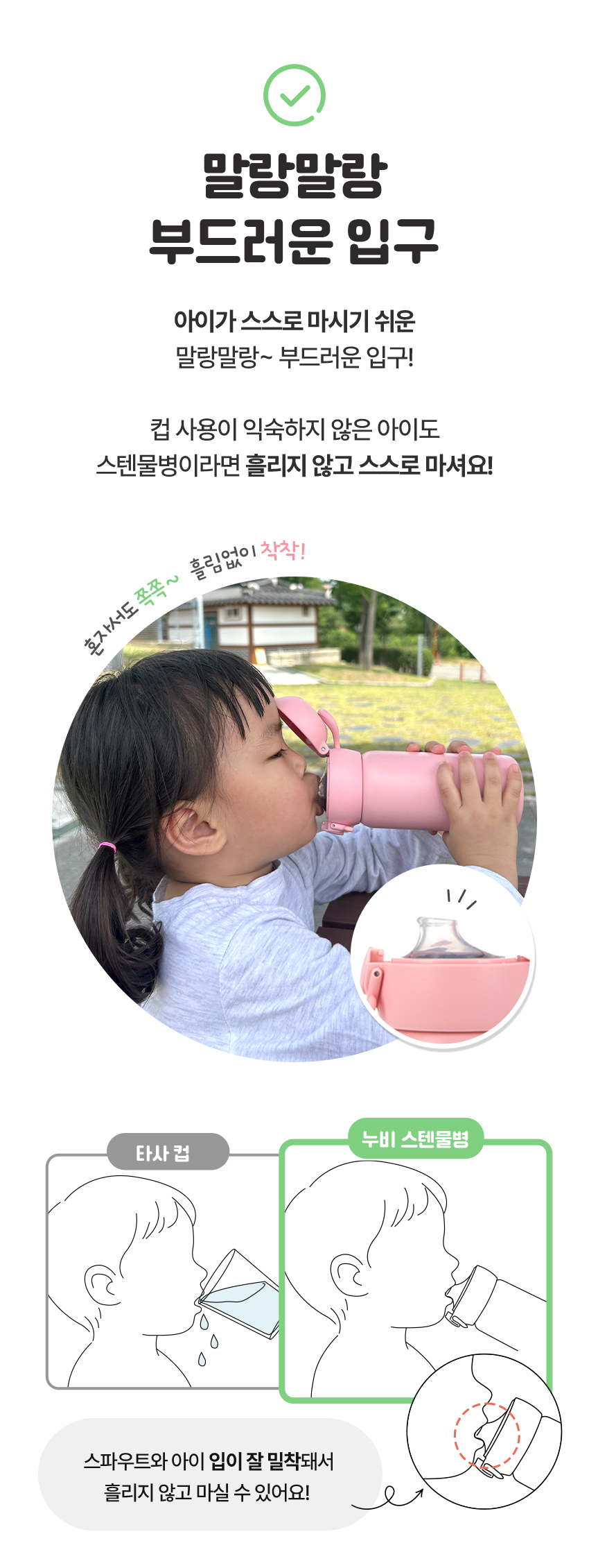 만 24개월 이상 유아 및 어린이, 어린이집·유치원 외출용 물병으로 이상적입니다.